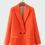 Moderen oversized suknjič, ki združuje udobje in eleganco. Njegov prostoren kroj daje značaj uličnemu slogu, medtem ko detajli na zaključkih in brezčasna zasnova omogočajo, da je idealen za casual in chic videz. Enostavno se nosi s krilom, hlačami ali obleko, pri čemer dodaja dinamičen in moderen videz.