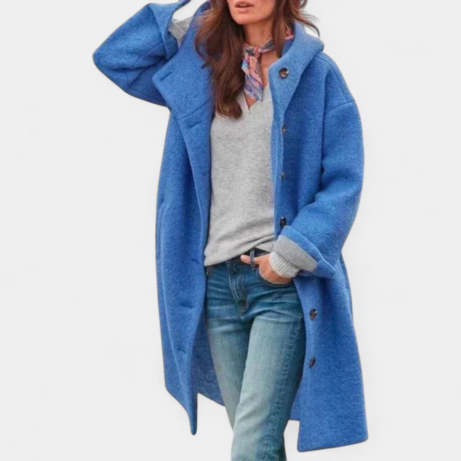 - Praktični detajli – kapuca, gumbi in žepi za toplino in funkcionalnost