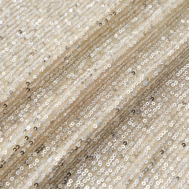 Klepet brez hrbta s bleščicami in dolgimi rokavi