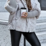 ✔️ Stilska zasnova: Kombinacija puffer jakne in teddy podloge jo naredi vsestranskega zimskega sopotnika, ki se prilega tako kavbojkam kot tudi športnejšim outfitom.