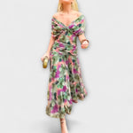 Vstopite v svet elegance z našimi maxi oblekami z V-izrezom in cvetličnim vzorcem Fantasy. Te osupljive obleke imajo edinstven cvetlični vzorec, ki ujame bistvo rokodelstva in čarobnosti, kar jih naredi za idealno izbiro za posebne priložnosti.