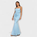 - Izrez na tankih naramnicah: Brez napora eleganten in idealen za tople večere.