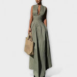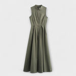 Kratka obleka brez rokavov s plisiranjem in tesnim krojem midi