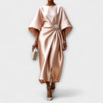 Z bogato barvo, popolnim draperanjem in elegantnim leskom je ta brezčasni kos idealen spremljevalec za gala dogodke, poroke in katerokoli elegantno prireditev v vašem koledarju.