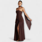 - Globok razporek: Razporek, ki poudarja noge, dodaja dramatičnost in omogoča svobodo gibanja.
