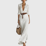 Zavinovací maxi obleka Thames združuje strukturirano eleganco z nežno ženskostjo. Z ovratnikom, navdihnjenim s suknjičem, poudarjenim pasom in padajočo krilom deluje kot poezija v gibanju – dovolj sofisticirana za zabavo, a hkrati sproščena za brunch na terasi. To so obleke, v katerih se boste počutili uravnovešeno in svobodno.