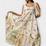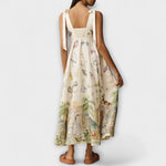 Juliette - Barvane midi obleke iz lanene tkanine z baletnim pasom
