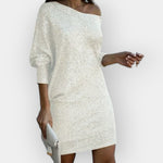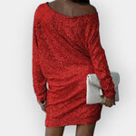 Obleka, ki pritegne poglede — osupljive bleščice v kontrastu ustvarjajo osupljiv učinek pri vsakem koraku. Idealna za bleščeče izhode in posebne trenutke.