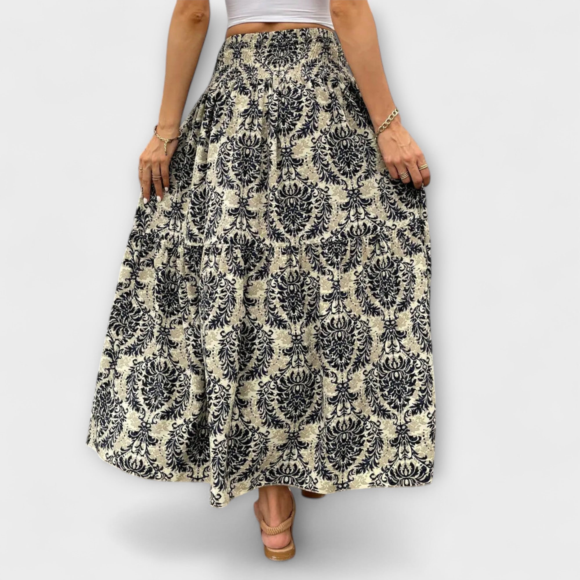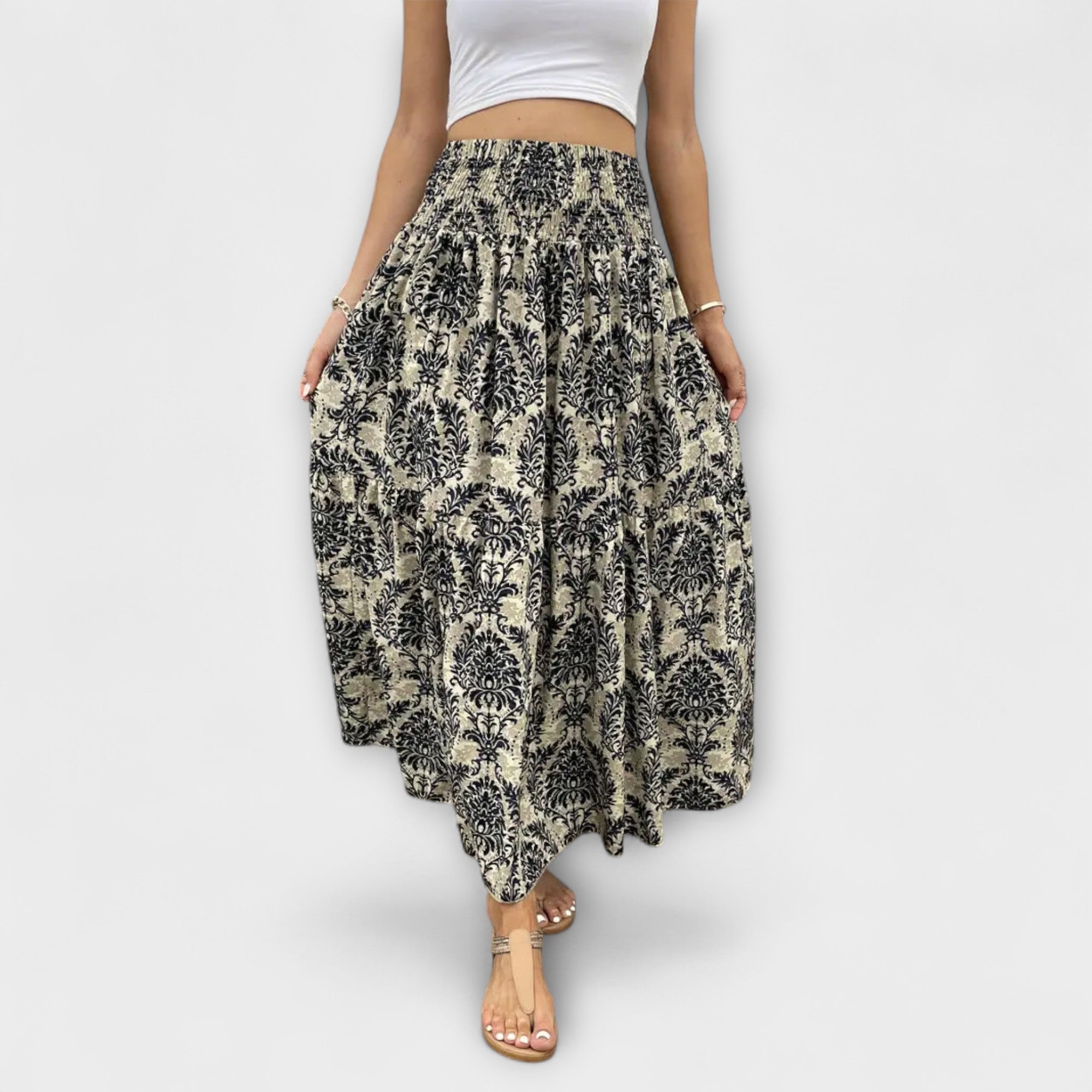 Odkrijte čisto gibljivost s to krilo, ki pripoveduje zgodbe. Edinstven vzorec in udoben material dodajata vašemu videzu pridih posebne elegance.