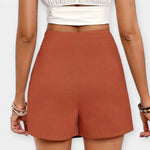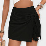 Elegantne in ženstvene, te šortky-suknje z visokim pasom in diskretnim vezanjem spredaj poudarjajo silhueto s popolno eleganco. Idealne za poletne kombinacije, združujejo udobje in stil ob vsaki priložnosti.