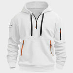 Urbani stil s funkcionalnostjo - Siva moška kapuca s svetlo oranžnimi detajli je idealna izbira za tiste, ki iščejo udobje in sodoben videz.